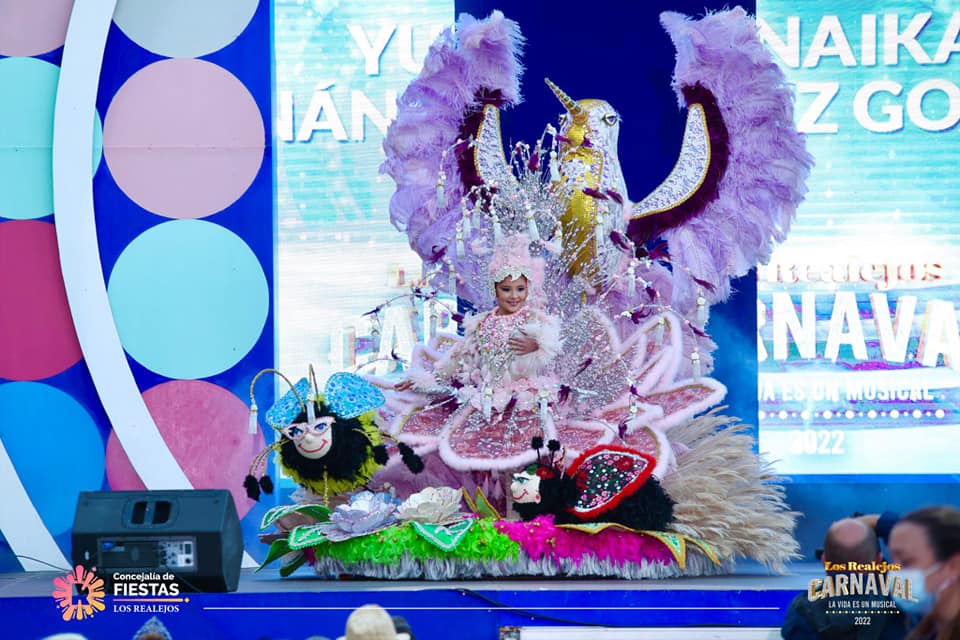 Aroa Gallardo Pérez se proclamó en la tarde de este miércoles 23 de marzo Reina Infantil del Carnaval 2022 de Los Realejos con la fantasía ‘¡Que empiece a sonar nuestra melodía favorita!’, diseñada por Creaciones de la Rosa, en representación de Grupo Restaurantes Bollullo Mirador San Pedro, Grupo Laureano Reyes, Hacienda El Terrero y Grupo Pedrana. Intervinieron otras cuatro aspirantes al título: Lucía Ventura Machado, Ainara García González, Yunaika Hernández González, y Luisa Mariela Casañas Felipe, con diseños de Jonay Díaz, José Martín, Dámaso Ramos y Erasmo Martín, respectivamente. La gala contó con distintos números en formato de musical a cargo de la compañía Habemus Teatro, acompañada de cuerpos de baile de Be Wild Dance y Escuela de Danza La Barca y actores del Grupo ML.