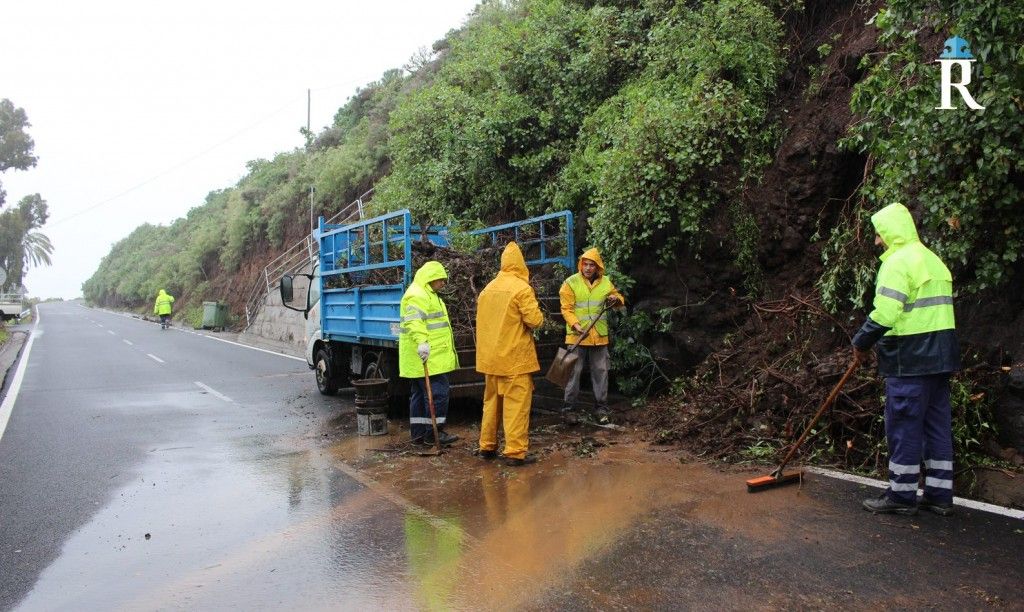 El temporal de lluvia que afecta a las islas con especial incidencia en Tenerife desde la madrugada de este miércoles 19 de noviembre afectó a primeras horas del día en Los Realejos con algún desprendimiento en la carretera de San Vicente y la carretera de Icod el Alto, así como alguna incidencia de inundación en garajes y bajos de viviendas, cuestiones que se han ido resolviendo a lo largo de la mañana a través de distintas cuadrillas de operarios municipales, así como los servicios del área de Seguridad y Emergencias (Policía Local, Protección Civil y Bomberos Voluntarios).