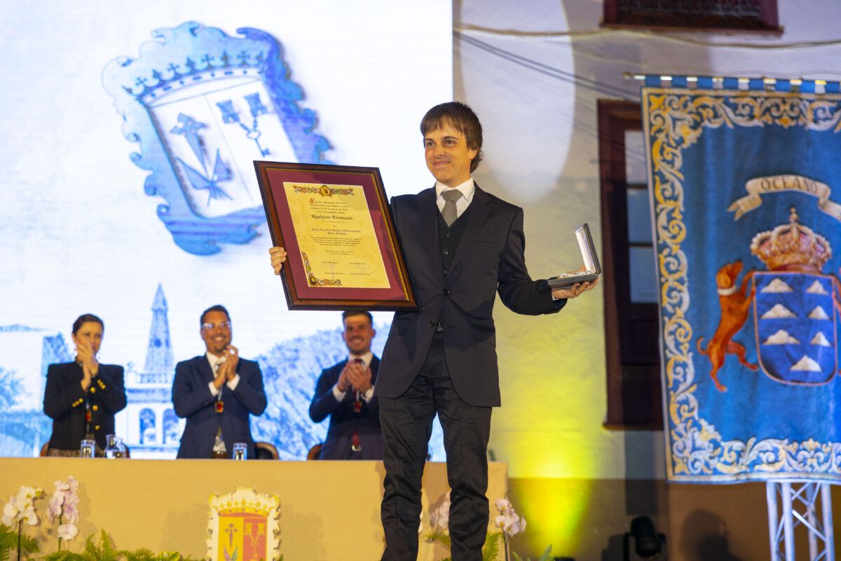 La Plaza Viera y Clavijo acogió en la noche de este viernes 4 de noviembre la entrega de los ‘Premios Realejeros Destacados 2022’ que, a propuesta de entidades ciudadanas de la localidad y tras validación del jurado designado al efecto e integrado por grupos políticos municipales y representantes de las mesas comunitarias de participación ciudadana de distrito y posterior aprobación plenaria por unanimidad, recayeron en la Asociación Canaria de Enfermos y Familiares de la Enfermedad Inflamatoria Intestinal y Ostomía (ACEIIO) en ‘Servicios sociales y voluntariado’, Hacienda El Terrero en ‘Turismo’, Antonio Rodríguez Ruiz en ‘Tradiciones populares’, Ramón Pérez Hernández en ‘Cultura’, Boutique Obrador Relieve en ‘Emprendeduría y negocio’, Isidro Díaz Estrada en ‘Educación’ y Jezabel Curbelo Hernández en ‘Investigación’.