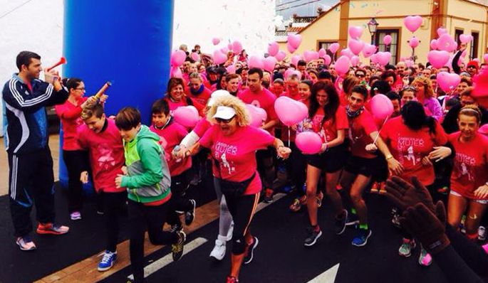El municipio de Los Realejos se vistió de rosa este domingo 22 de marzo gracias a la iniciativa de Quiro+Runn que, con la colaboración de las concejalías de Deportes y de Igualdad de Los Realejos y diversas entidades, organizó la V Carrera de la Mujer de Tenerife. La cita contó con más de 2.000 participantes, cuyas aportaciones lograron sumar 5.000 euros que la organización destinó a la Asociación Española Contra el Cáncer y que la imagen de la carrera, Hilda Siverio, que viene luchando en los últimos meses contra la enfermedad, recogía en nombre de los afectados por la misma.