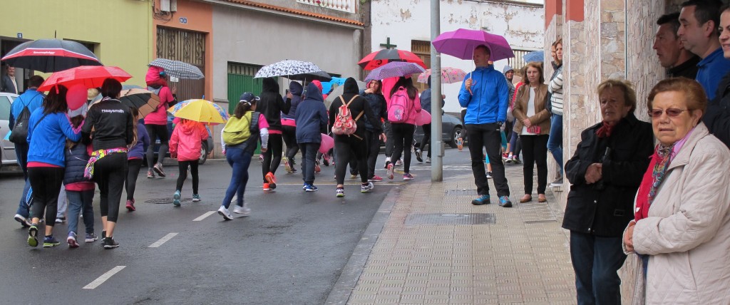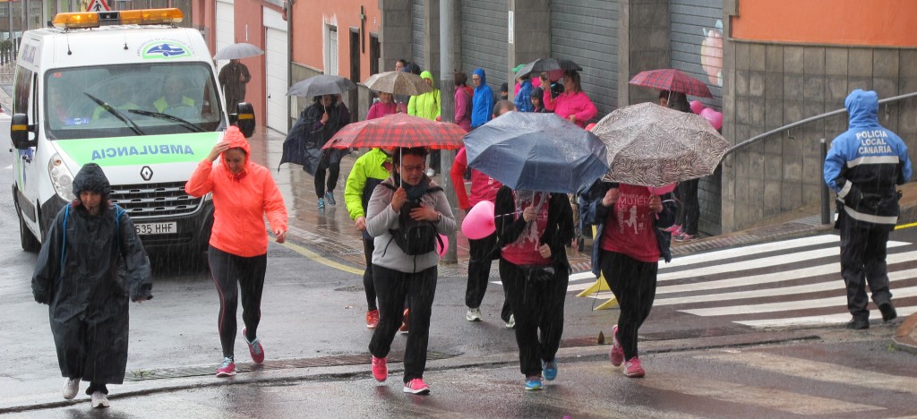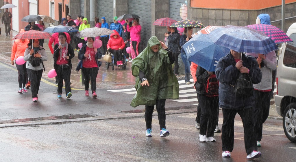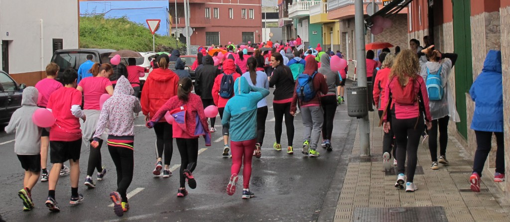 El alcalde de Los Realejos, Manuel Domínguez, daba la salida, que tuvo como punto de partida y de llegada la calle Real, frente a la plaza de La Cruz Santa, cubriendo una distancia de 4,5 kilómetros. Según el edil “la presencia de hace dos semanas del viento, que nos obligó a suspender, o en esta ocasión de la lluvia, no han sido más que una metáfora de lo que la propia lucha contra el cáncer supone para quienes la padecen, un afán de superación y de ganas de salir adelante que no debemos abandonar nunca”.