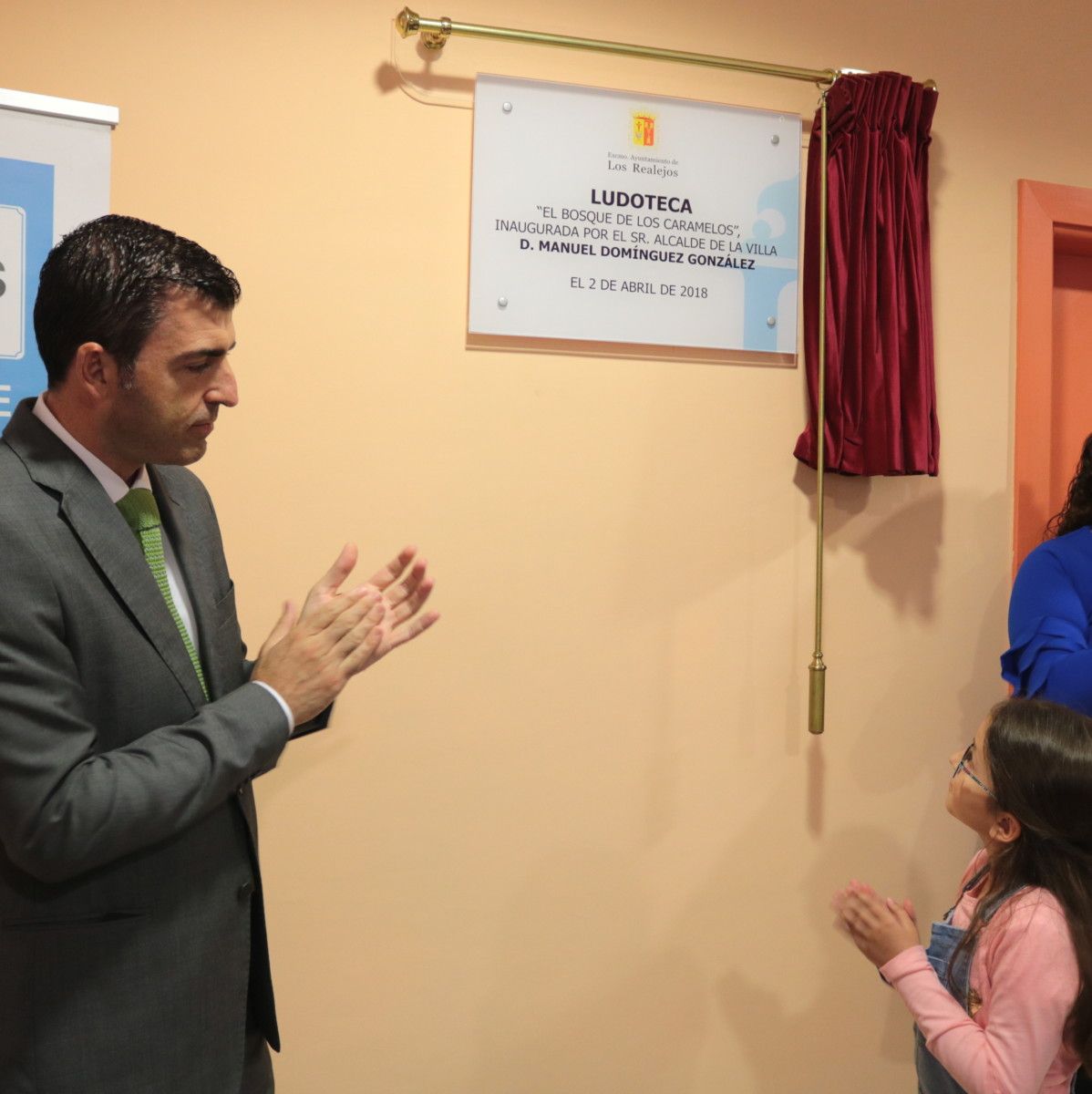 El alcalde de Los Realejos, Manuel Domínguez, la concejala de Bienestar Social, Infancia y de zona de Icod el Alto, Olga Jorge, y la niña realejera Mariela Rodríguez Fleitas procedieron en la tarde de este lunes 2 de abril a descubrir la placa que daba por inaugurada la nueva ludoteca ‘El Bosque de los Caramelos’ en los bajos de la plaza Poeta Antonio Reyes de este núcleo del municipio.