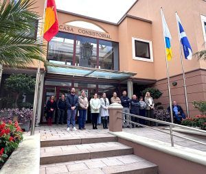 Minuto de silencio del Ayuntamiento de Los Realejos en memoria de las víctimas del accidente de tren de Córdoba El alcalde de Los Realejos, Adolfo González, acompañado por integrantes de la corporación municipal y personal público del