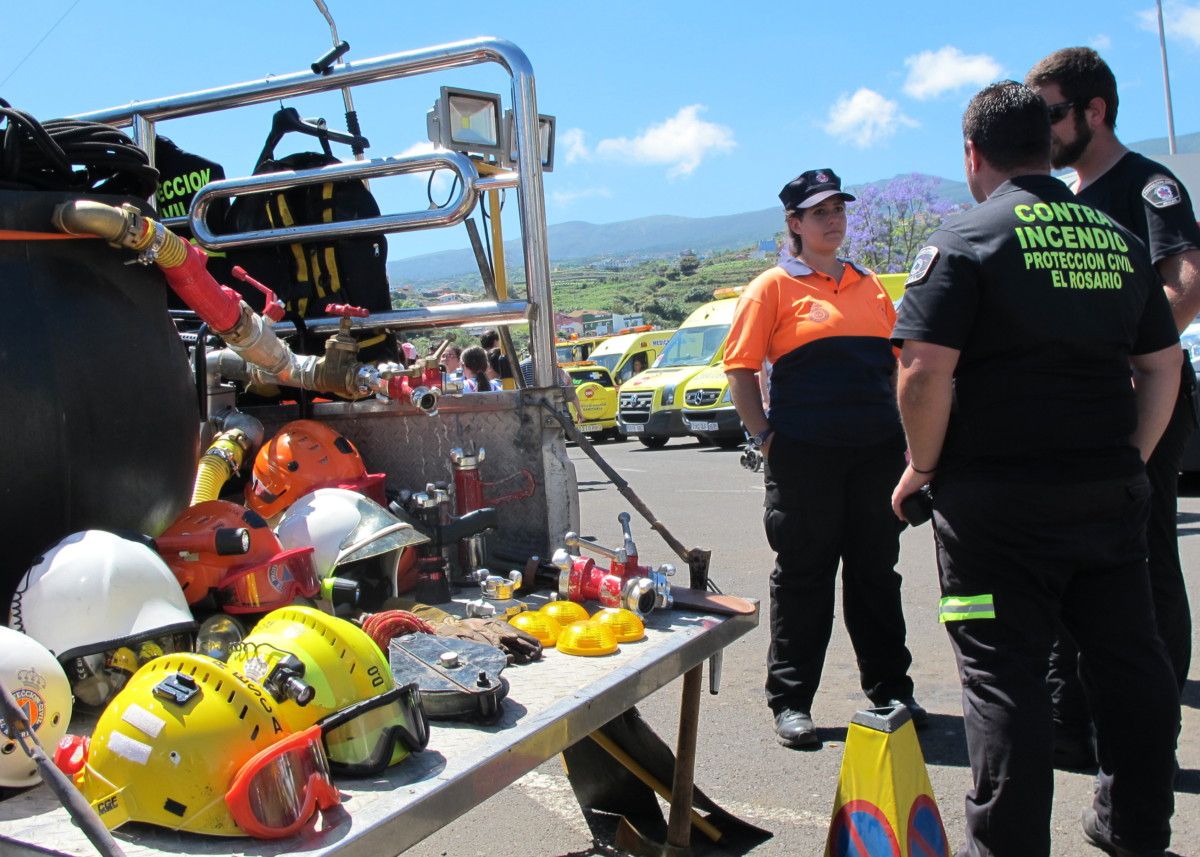 La Finca El Llano de Los Realejos acogió de 10:00 a 14:00 horas de este viernes 26 de mayo la VIII Jornada de Seguridad y Emergencias organizada por el Ayuntamiento, en la que se reunieron más de 130 efectivos de más de una decena de unidades de prevención y atención de emergencias de la comunidad autónoma, que participaron además en el ejercicio de un simulacro de rescate a dos personas heridas en las inmediaciones de un barranco cercano a la explanada de exposición.